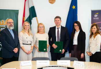 Stratégiai együttműködési megállapodást kötött a Debreceni Egyetem és az EY Magyarország. A tanácsadó cég célja a naprakész iparági és szakmai ismeretek megosztása, a tehetségmenedzsment és a hallgatói karrierutak támogatása. A keretmegállapodást csütörtökön írta alá Fenyves Veronika, a Gazdaságtudományi Kar dékánja és Vékási Tamás, az EY Magyarország vezérigazgatója.