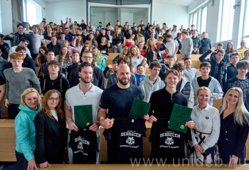 A fizikális erőnlét, a mentális állapot és a regeneráció kényes egyensúlyáról, a légiós élet kihívásairól, a spanyol és skandináv kézilabdastílus megítéléséről, a sorozatterhelés, valamint a kritikus meccshelyzetek kezeléséről, feldolgozásáról is meséltek hallgatótársaiknak a Debreceni Egyetem Gazdaságtudományi Karának válogatott kézilabdázó hallgatói. Sipos Adrián, Palasics Kristóf és Lukács Péter a válogatott összetartás szünetében érkeztek konzultációra Debrecenbe, és átvették a kar Együtt a Gazdaságtudományi Karért Ösztöndíját is.
