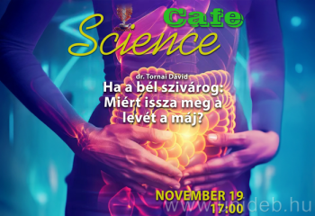 Folytatódik a Debreceni Egyetem Tudományos Igazgatóságának ismeretterjesztő sorozata. November 19-én, szerdán 17 órai kezdettel Ha a bél szivárog, miért issza meg a levét a máj? címmel Tornai Dávid, az Általános Orvostudományi Kar Belgyógyászati Intézet Gasztroenterológiai Tanszék tudományos munkatársa tart előadást a Karakter 1517 Könyvesbolt és Kávézóban.